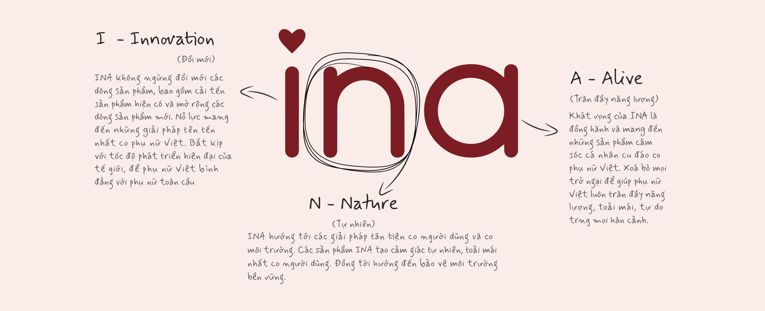Với phương châm “thương hiệu Việt vì phụ nữ Việt”, các sản phẩm của INA được nghiên cứu chuyên biệt dựa trên sự thấu hiểu sâu sắc cơ thể, nhu cầu, và lối sống của phụ nữ Việt Nam. Sản phẩm đáp ứng tiêu chuẩn an toàn quốc tế, và luôn có mức giá cạnh tranh để phụ nữ Việt Nam khắp mọi miền đều có thể tiếp cận những giải pháp chăm sóc sức khỏe tiên tiến.